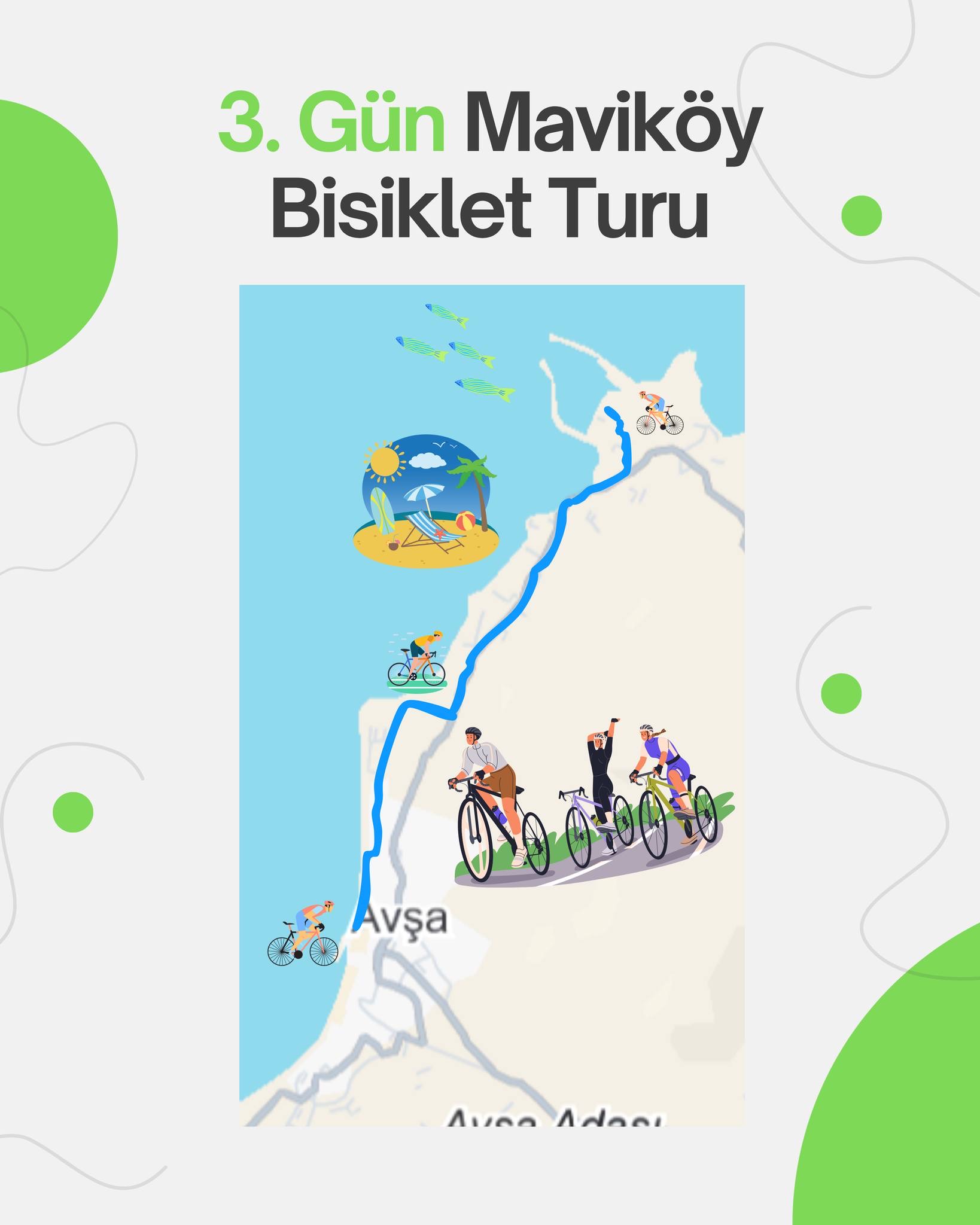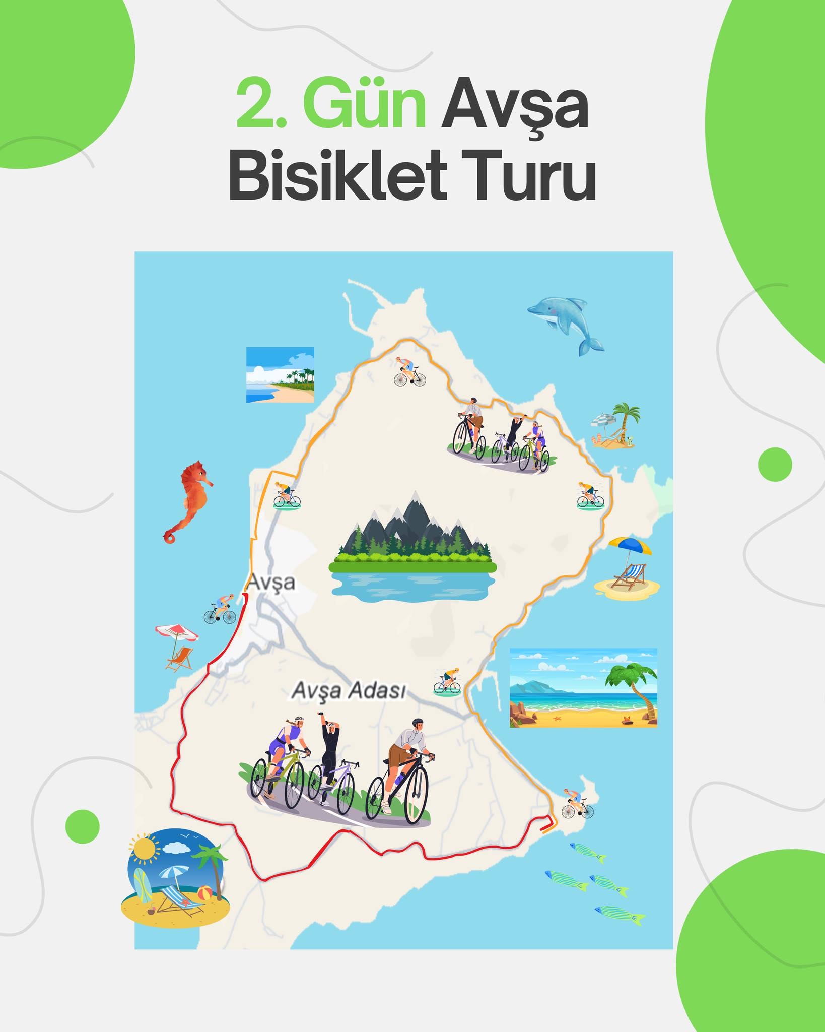 Avşa Bisiklet Festivali etkinliği kapsamında Avşa sahili ve Yiğitler sahili boyunca pedal çevirecek onlarca bisikletçi, ada halkına bisikletli ulaşımın önemini gösterecek. Tur, aynı zamanda spor, eğlence ve tatili bir araya getirerek Avşa’nın turizm potansiyeline katkı sağlamayı hedefliyor.