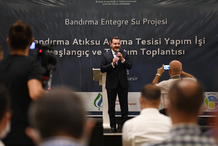 AB ve Dış İlişkiler Genel Müdürü Bülent Üncü, toplantıda yaptığı konuşmada, tesisin Marmara Denizi ve Bandırma için önemine dikkati çekti. Üncü, AB ile ulusal paylarla da finanse ettikleri 20 milyon avroluk büyük bir projeye başladıklarını belirterek “Atık su arıtma olarak startını vereceğiz. Açıkçası, Batı Anadolu’da yürüttüğümüz tek projemiz. Doğu ve Güneydoğu’daki projelerimizin dışında Bandırma’ya ve özellikle Marmara Bölgesi’ne yapacağı katkıyı da çok önemsiyoruz.” dedi.Türkiye’nin çevre altyapısına destek sağlayan, 2007’den bu yana devam eden Avrupa Birliği Katılım Öncesi Mali Yardım Programı’ndan bugüne kadar hibe olarak 1 milyar avrodan fazla kaynak kullandıklarını bildiren Üncü, yurt genelinde 50 proje için belediyelerin, bakanlıkların katkılarıyla 11-12 milyar avroyu bulan önemli bir yatırımın hayata geçirildiğini aktardı. Söz konusu yatırımların detaylarına değinen Üncü, “Bu yardımlar sayesinde 38’i arıtma tesisi, 7’si su temini projesi, 5’i katı atık, 1500-1600 kilometrelik içme suyu hattı, 1200-1300 kilometrelik atık su kolektör hattını gerçekleştirdik.” diye konuştu.”2023’e kadar Bandırma’nın içinde iş makineleri hep çalışacak”