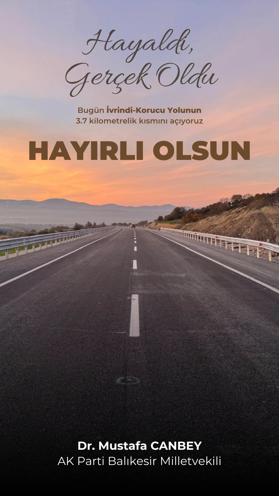 “İvrindi – Korucu – Bergama Yolumuzun 3,7 kilometrelik bölümünü bugün milletimizin hizmetine sunuyoruz. Milletimize söz verdiğimiz gibi üretmeye, çalışmaya ve hizmet etmeye devam ediyoruz.”
