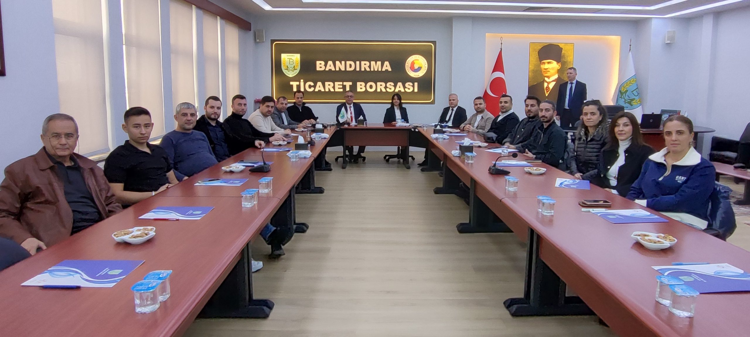 Toplantıya Bandırma Ticaret Borsası Yönetim Kurulu Başkanı Can Ata Tan, Başkan Yardımcısı Mehmet Aytekin, Yönetim Kurulu Üyesi Mustafa Çömez, Genel Sekreter Ertunç İşbay, Genç Girişimciler Kurulu ile Kadın Girişimciler Kurulu Üyeleri ve işletme temsilcileri katıldı. Toplantının ardından KOSGEB Kobi Uzmanı Kadir Dağdeviren ve DDX Uzmanı Dr. Gökçen Yılmaz’a plaket takdim edildi.