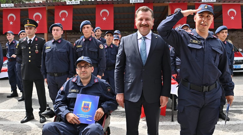 Konuşmanın ardından, 21 engelli jandarma er, komandoların da eşlik etmesiyle Türk bayrağı üzerine ant içti. Programda, jandarma uyuşturucu arama köpeği “Zafran” ve bomba arama köpeği “Vaha” da temsili olarak araçlarda uyuşturucu ve bomba araması gerçekleştirdi. Balıkesir Valisi Hasan Şıldak, İl Jandarma Komutanı Kıdemli Albay Ali Yıldız, Cumhuriyet Başsavcısı Abdulkadir Akın, 9. Ana Jet Üs ve Garnizon Komutanı Hava Pilot Tuğgeneral Cihangir Kemal Yüzçelik, Balıkesir Büyükşehir Belediye Başkanı Yücel Yılmaz ile İl Emniyet Müdürü Hasan Onar, engelli askerlere künyeleri ve terhis belgelerini teslim etti.