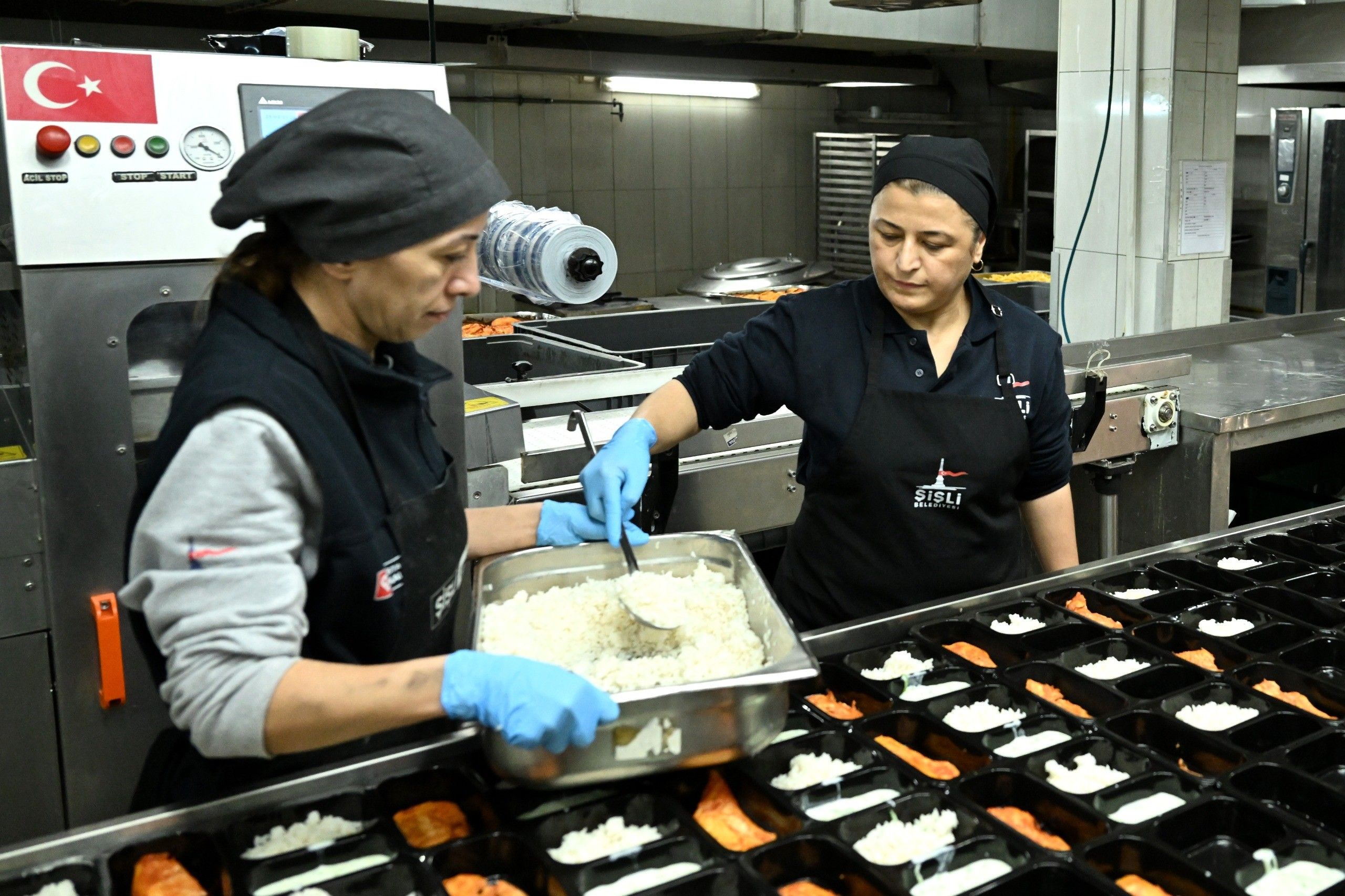 Günün ilk ışıklarıyla hummalı çalışmaların başladığı aşevinde, toplam 26 kişi görev yapıyor. Uzman gıda mühendisleri tarafından kalori miktarları hesaplanarak belirlenen yemekler, usta aşçılar tarafından hijyen şartlarına uygun şekilde pişirilerek, hazırlanıyor. Aşevinde günlük 3 bin 200 kişilik yemek çıkarken, bunun bin 400 öğünü Şişli’deki 460 ihtiyaç sahibi haneye ulaştırılıyor.