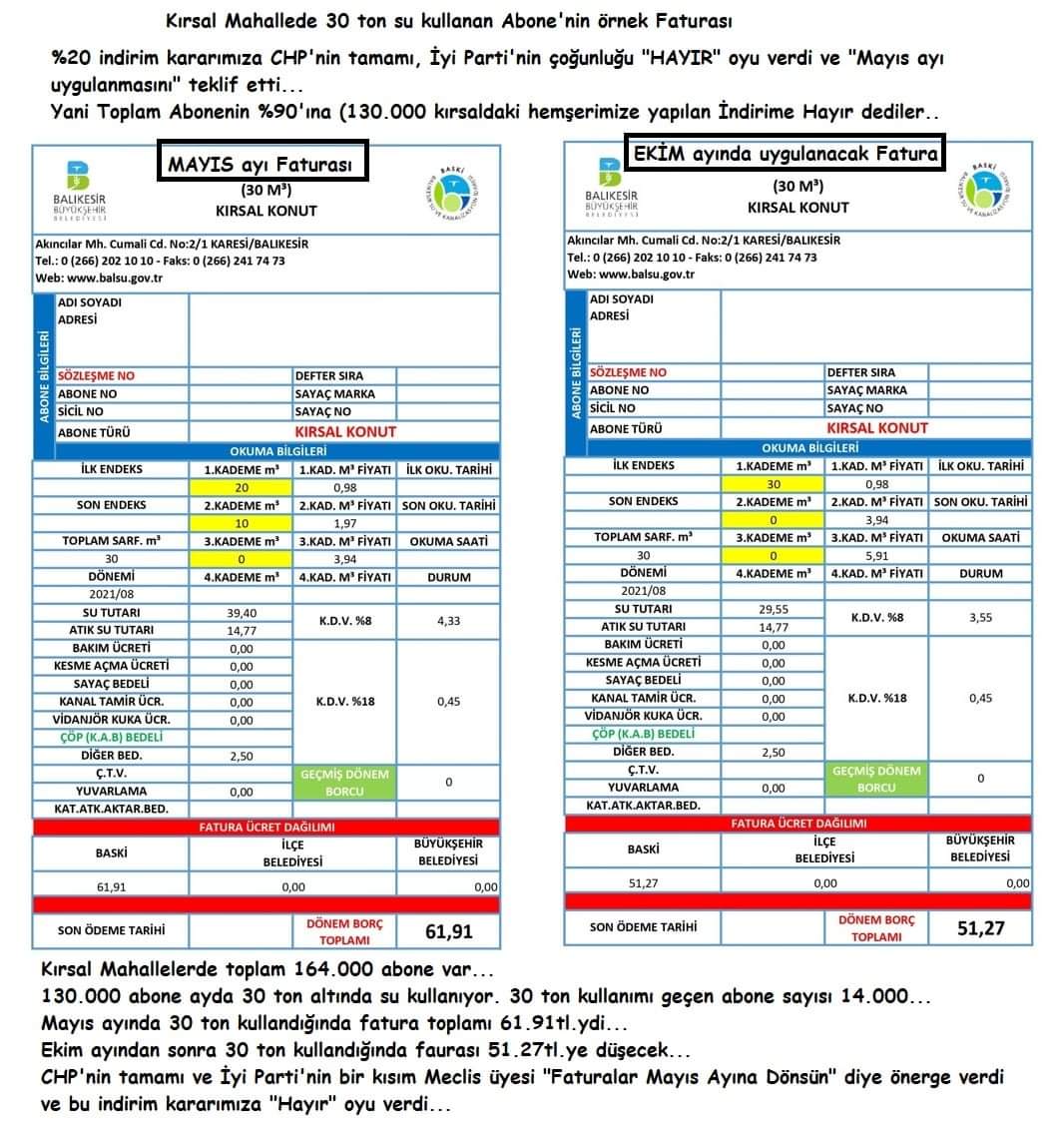 Şahin “Büyükşehir Yasası gereği 2014 yılından bu yana kırsal mahallelerdeki su fiyatları ilçe merkezinin ¼ oranında uygulanıyor. Bandırma’nın kırsal Mahallerinden biri olan Doğruca’da suyun 30 tonu 30 TL olurken ilçe merkezindeki Paşabayır Mahallesi’nde 7.5 tonu 30 TL’dir. Kırsalda su zaten ucuz buna birde yüzde 20 oranında indirim yapıldı. CHP bunu mu yargıya taşıyorsunuz? CHP Bandırma İlçe Başkanı Selim Panç sayı saymayı bilmiyor. Siyaset kendisine yaramıyor. Anaokulu çocuğunun bildiği matematik düzeyini bile unutturuyor anlaşılan, tavsiyem hekimliğine devam etsin. Bandırma ya bu şekilde fayda sağlasın, zira biz onu hekim olarak takdir ediyoruz” dedi.