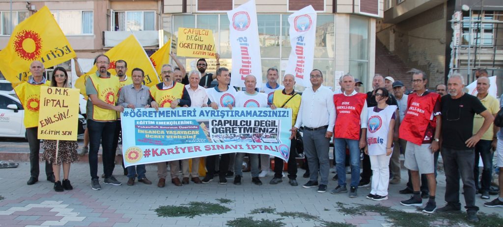 Eğitim Sen ve Eğitim İş Bandırma Şube Başkanlığı tarafından İlçe Milli Eğitim Müdürlüğü önünde yapılan basın açıklamasında kariyer sınavlarının iptal edilmesi istendi. Basın açıklamasına Eğitim Sen Bandırma Temsilcisi Erdal Doğru, Eğitim İş Şube Başkanı Kadir Taylan, CHP İlçe Başkan Yardımcısı Hüseyin Çeri, Sol Parti İlçe Başkanı Ferhat Kaya, HDP İlçe Başkanı Ali Bora, Emekli Sen Başkanvekili Erdal Erdoğan, Kent Konseyi Başkanı Serdar Polat, Gıda İş Sendikası Balıkesir-Çanakkale Bölge Sorumlusu Recep Gökdeniz ve sendikaların üyeleri katıldı.